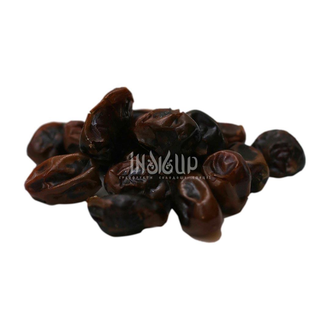Зовнішній вигляд: Темно-коричневі або майже чорні, великі (3-5 см) плоди з ніжною шкіркою. Смак і текстура: М’ясисті, соковиті, солодкі, з карамельно-шоколадним присмаком. Походження: Вирощуються переважно в провінції Бам, Іран. Природний стан: Часто продаються свіжими (не зовсім сушеними), з природним білим нальотом, без додавання сиропу чи олії.